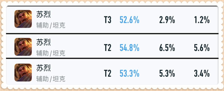 「苏烈」现在在各个段位的胜率均处于高位,尤其是巅峰赛更是以54.8%的胜率位于所有对抗路英雄的第二位,为此策划对其三技能做出调整: