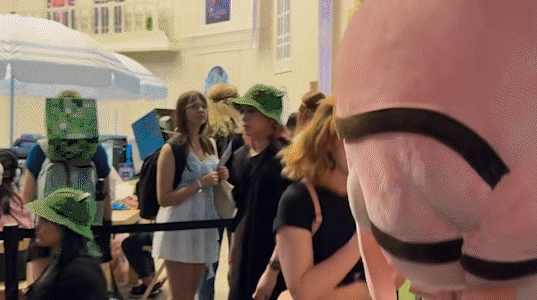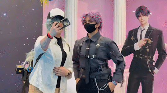 而在《无限暖暖》一旁的《恋与深空》展区,不少玩家则举着周边为自己推的男主打call,脸上写满了幸福和激动。一位玩家告诉我,她在叠纸这儿排着长队,就是为了进去和自己喜欢的男主拍合影、拿物料。