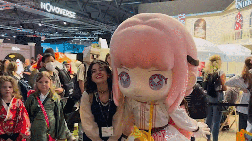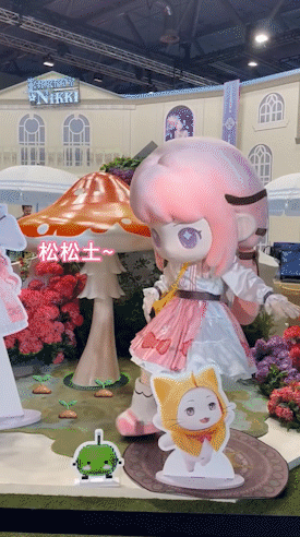 在Hall 6展馆右侧的叠纸展台,有一个活泼又可爱的暖暖,吸引了很多玩家驻足合影。工作人员还会找时机在旁边用粉色机器吹泡泡,给现场增加肉眼可见的「甜味」。