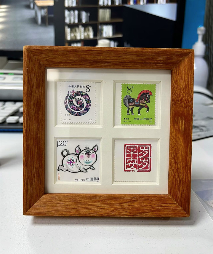 把生肖邮票做成相框、摆件展台,新文化孕育出了新产品,市场打开后,邮票的销量跟着飞涨。