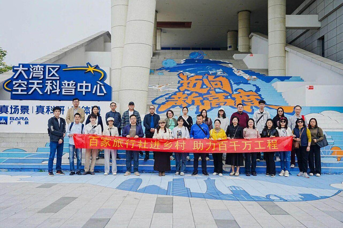 当天,“百家旅行社进乡村”考察活动同步进行。旅行社及企业代表参观了广东空天科技研究院,观摩了低空飞行器风洞、飞演指控中心等科研设施及飞行背包等科技成果。