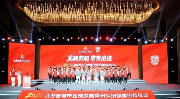 出征仪式上,已完成数月封闭冬训的全体教练员、运动员整齐亮相,包括常州培养的青年球员、在常高校学生,以及苏桥桥等2025年“苏超”表现优异的球员。值得一提的是,常州培养的小将叶文杰已经入选国青队,球队今年还招募了常州大学在籍研究生,充分体现了常州足球“体教融合”的丰硕成果。
