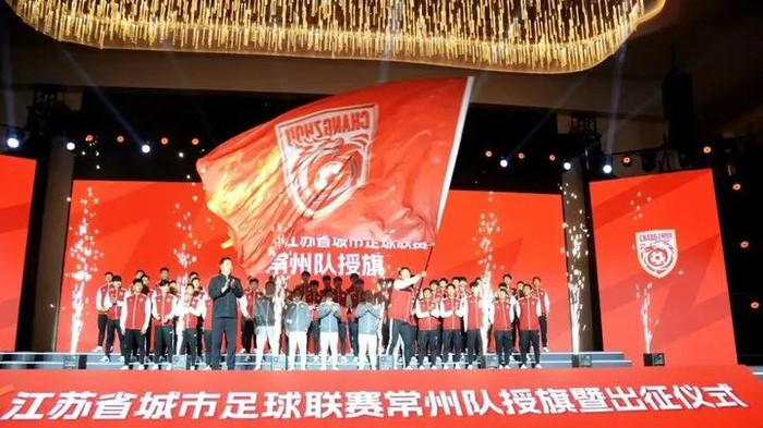 随后的授旗仪式将现场氛围推向高潮。队旗被郑重授予队长王宏宇,象征着拼搏与胜利的旗帜迎风舒展。随着出征号角吹响,这支承载着城市期待的球队,将以“勇争一流、耻为二手”的常州精神,在绿茵场上全力拼搏。