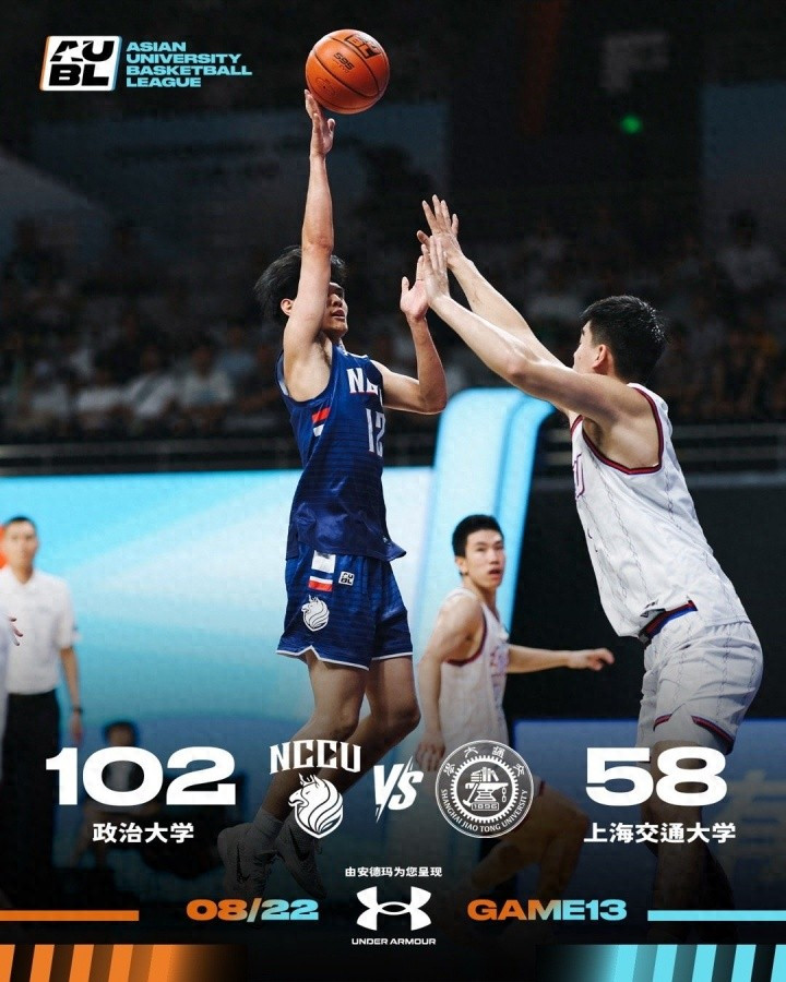 直播吧08月22日讯 AUBL亚洲大学生篮球联赛1/4决赛,上海交通大学以58-102惨败中国台北的政治大学,无缘四强。