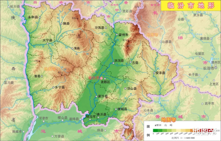 临汾盆地在汾河下游,汾河自北而南纵贯,最终注入黄河,暖温带大陆性季风气候,年降水量453-547毫米。