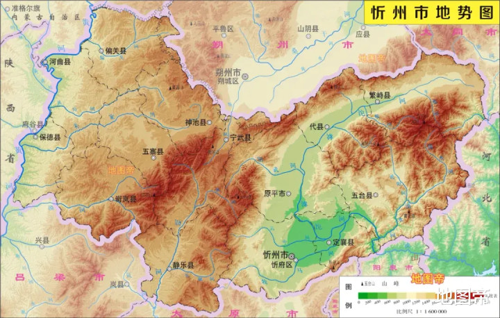 忻定盆地海拔为600米-1000米, 滹沱河及其支流纵贯其间,年降水量345-588毫米。