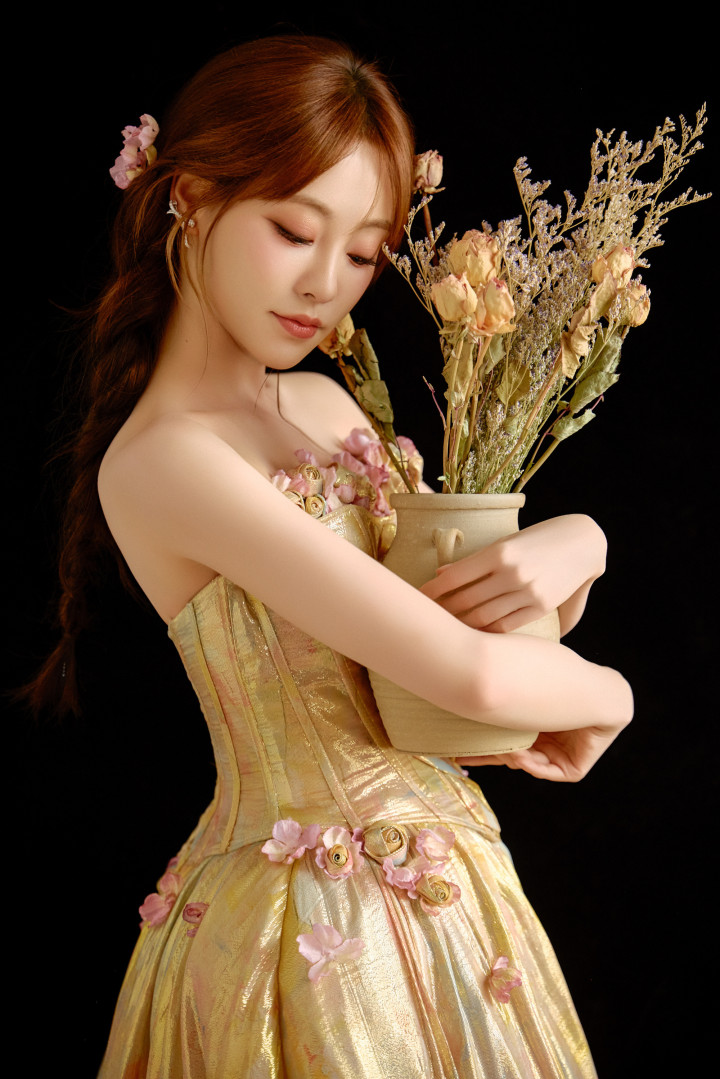 祝绪丹童话公主下凡! 鎏金裙缀粉花, 编发烂漫太甜美