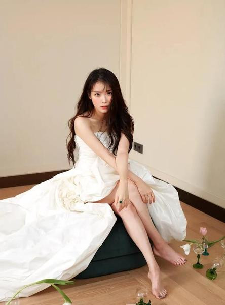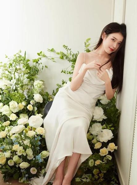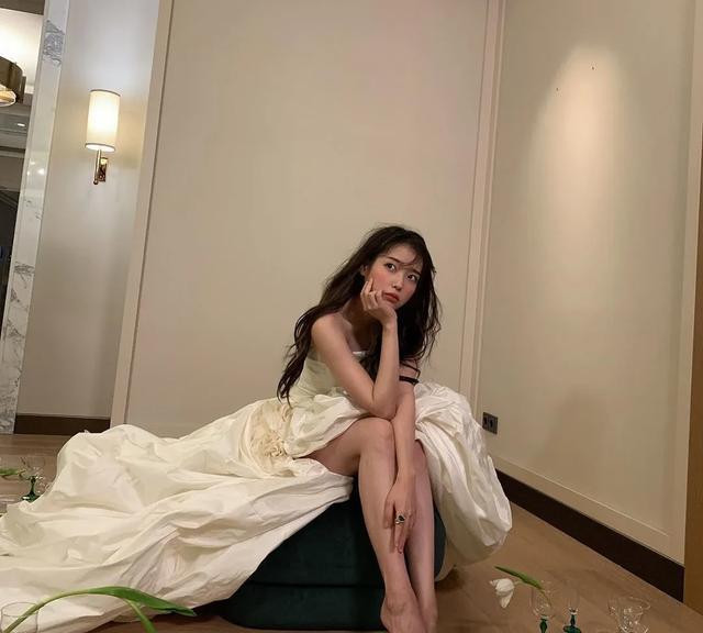 要我说她真是把显高心机玩明白了——高腰白裙一穿,裙摆前短后长偷偷拉腿,光脚踩地直接让脚背算进腿长,配上绷直的优雅脚踝线,这视觉效果谁还管真实身高啊!