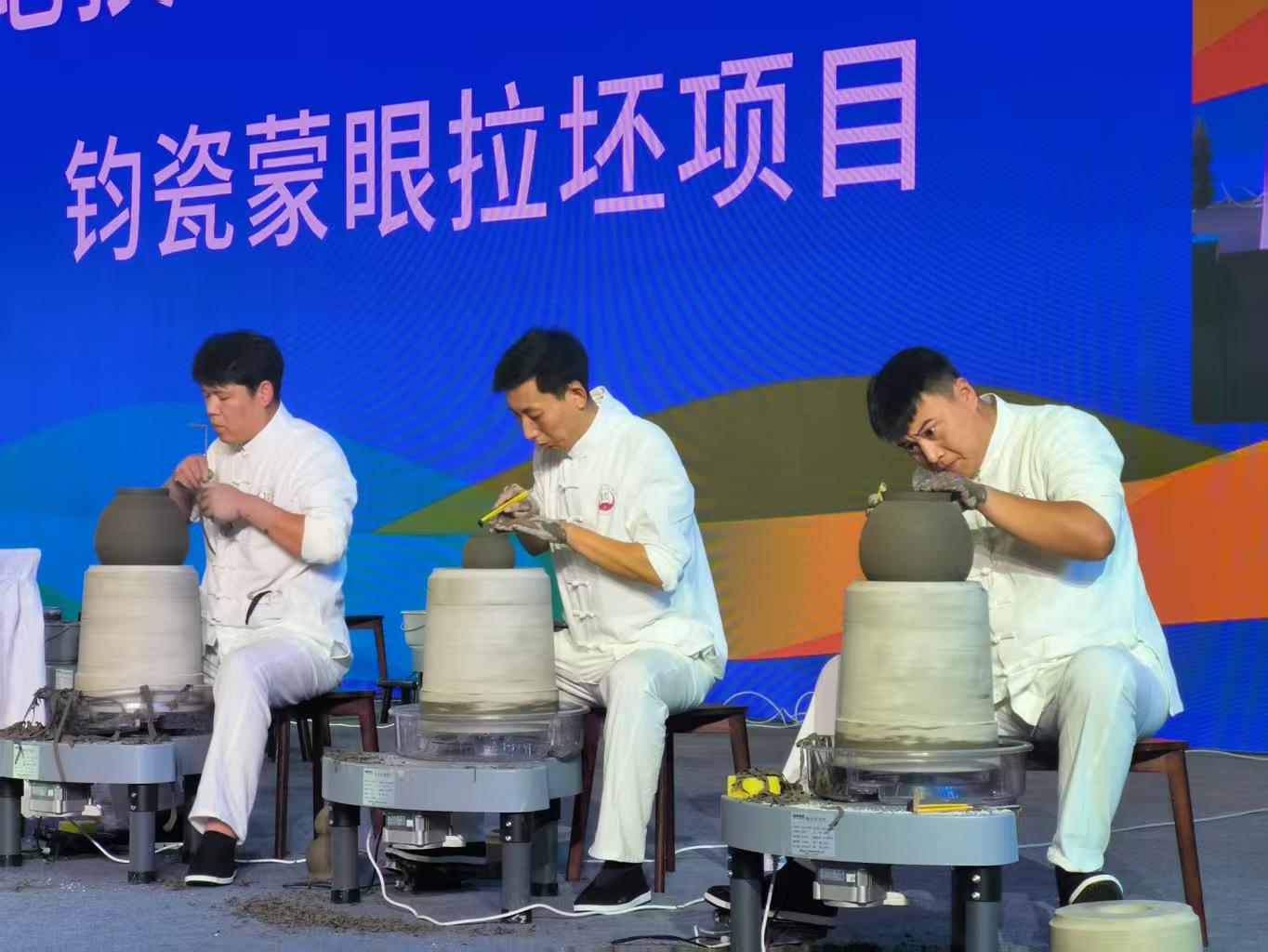 大河网讯 蒙着双眼,陶瓷大师的双手却能精准探入飞转的泥坯,让泥坯仿佛被注入生命一般,自如地攀升、延展、收口……不大工夫,一个线条流畅、韵味十足的钧瓷茶杯坯料出现在眼前,赢得观众的一片叫好声。